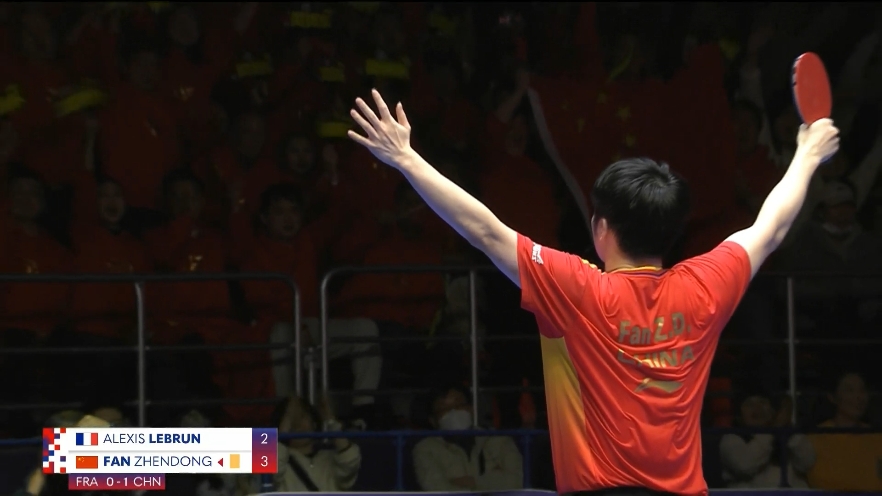 第四局樊振东几乎全程落后,在局末挽救一个盘点,12-10逆转拿下这局。第五局樊振东打出气势,11-7稳稳拿下,大比分3-2取得本场胜利。中国男团总比分2-0领先,离冠军只差一场!