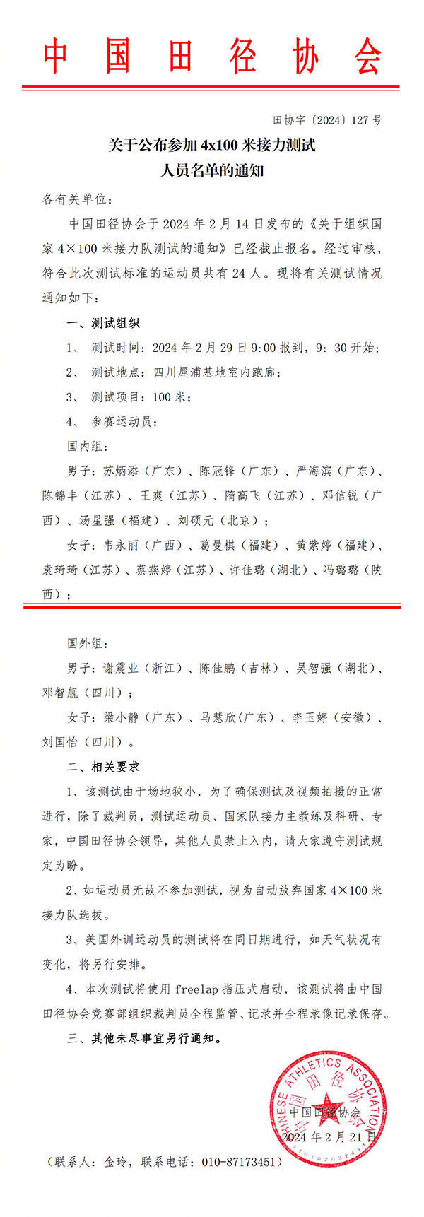 在中国田径协会发布的《关于公布参加4×100米接力测试人员名单的通知》,苏炳添出现在国内组名单中。