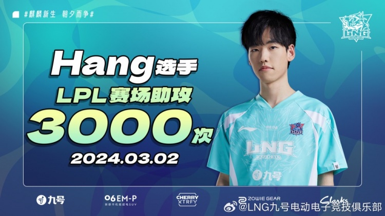 直播吧3月2日讯 在2024LPL春季赛常规赛今日的比赛中,Hang选手使用洛英雄登场出战,在LPL英雄联盟职业联赛中达到3000次助攻里程碑!