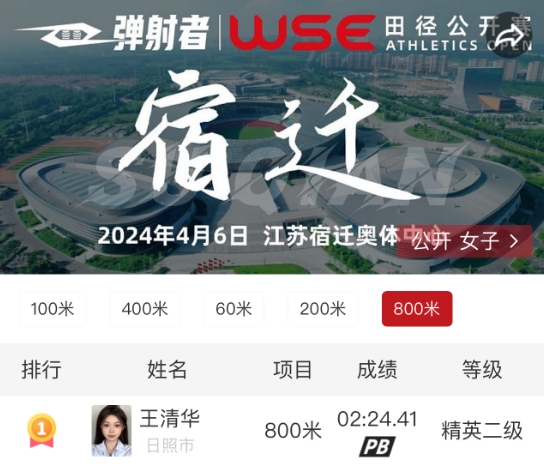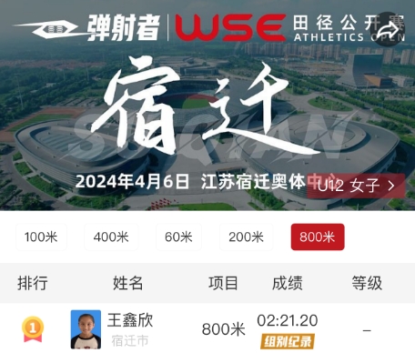 在近日结束的2024年WSE田径公开赛宿迁站比赛中,12岁小女孩王鑫欣(5号)成为焦点,她在女子800米决赛中以『2分21秒20』达标国家二级的成绩夺冠,点燃全场。