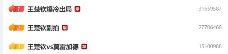 赛后,王楚钦相关的多个词条冲上热搜前三。