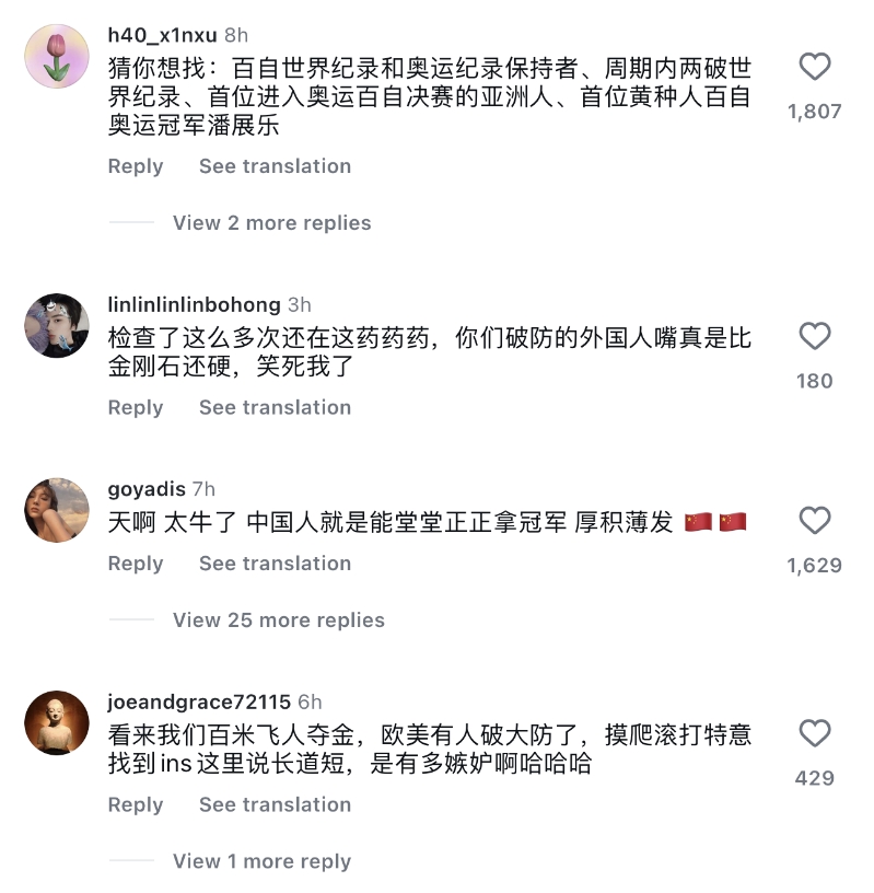 不过中国网友很快站了出来霸气回怼,守护潘展乐IG评论区👇