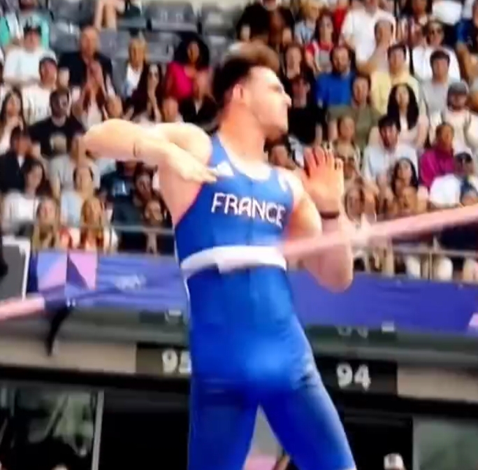安东尼-阿米拉蒂前两跳均挑战失败,最后一跳时身体已越过横杆,但因隐私部位碰到横杆导致横杆跌落,挑战失败。