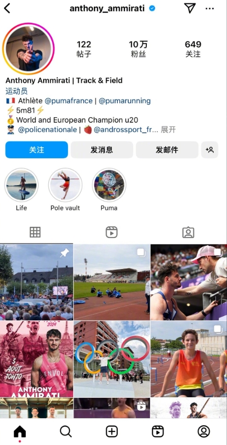安东尼-阿米拉蒂今年21岁,今年最佳成绩5.72米,个人最佳成绩5.81米。