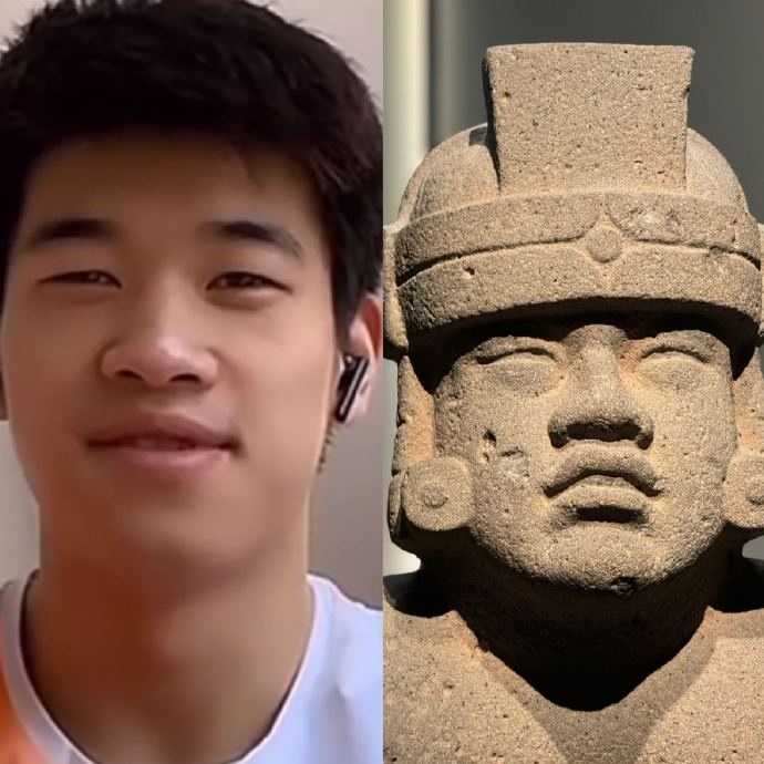 有细心的网友发现,潘展乐“撞脸”了成都某博物馆内的一件雕塑展品。据悉,这件展品是成都博物馆“寻踪美洲豹”墨西哥古代文明展的展品。