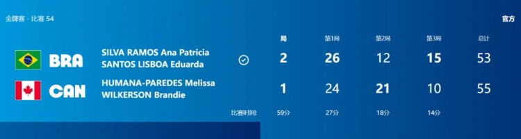 >沙滩排球女子决赛 巴西组合2-1战胜加拿大组合夺得金牌