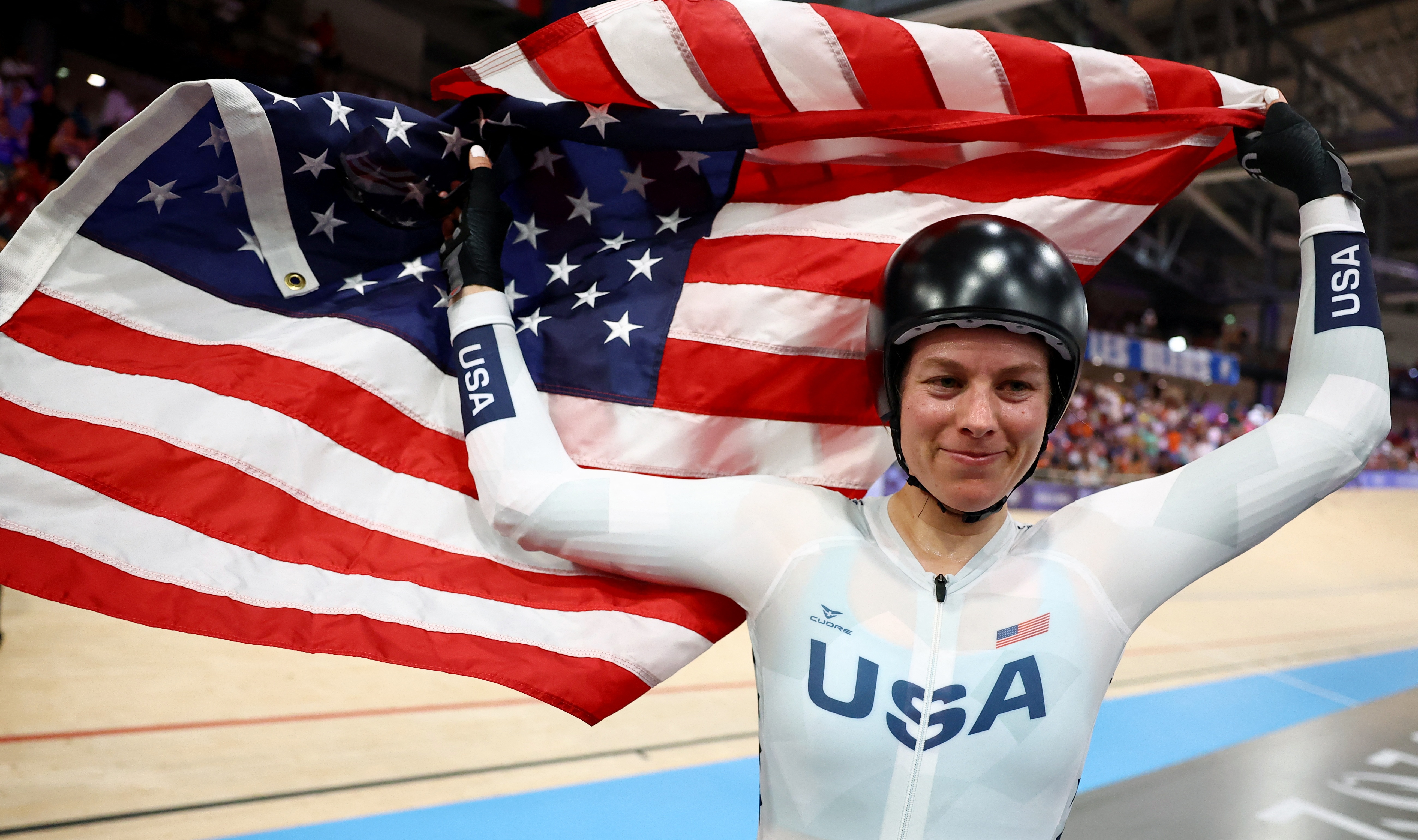 上届奥运,美国39金第一,中国38金第二。瓦伦特在赛事尾声获得东京奥运会场地自行车女子全能赛金牌。