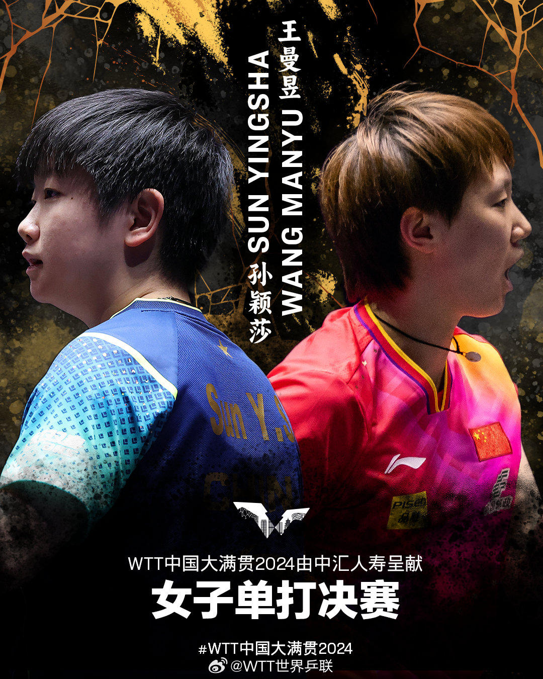 直播吧10月06日讯 WTT中国大满贯女单决赛,孙颖莎vs王曼昱。最终孙颖莎以4-2击败队友王曼昱,夺得WTT中国大满贯女单冠军。
