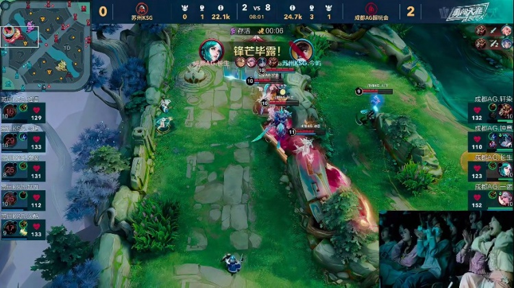 【7:50】上路AG五人包围KSG,KSG直接强开被AG反打,AG打出0换5团战!