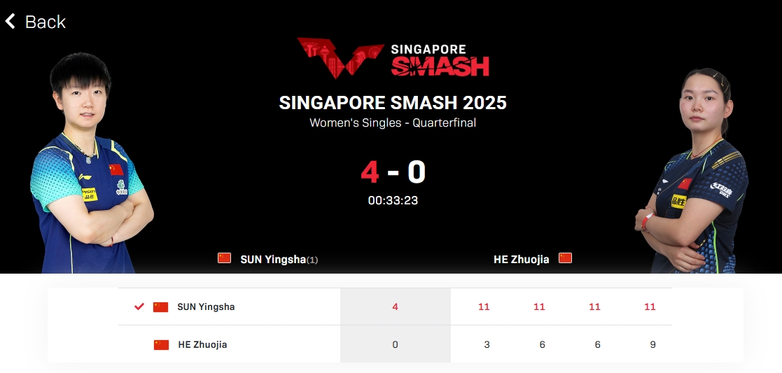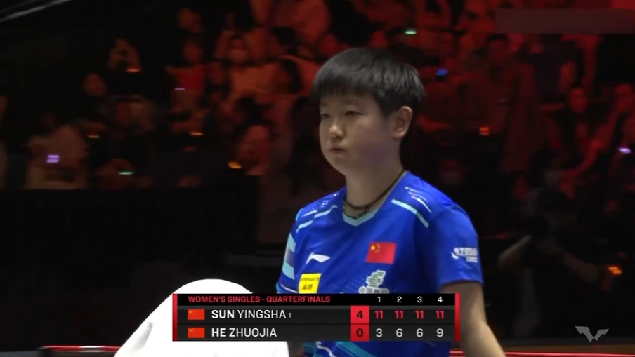 直播吧02月07日讯 2025年WTT新加坡大满贯8强战,孙颖莎4-0战胜队友何卓佳,挺进女单半决赛。