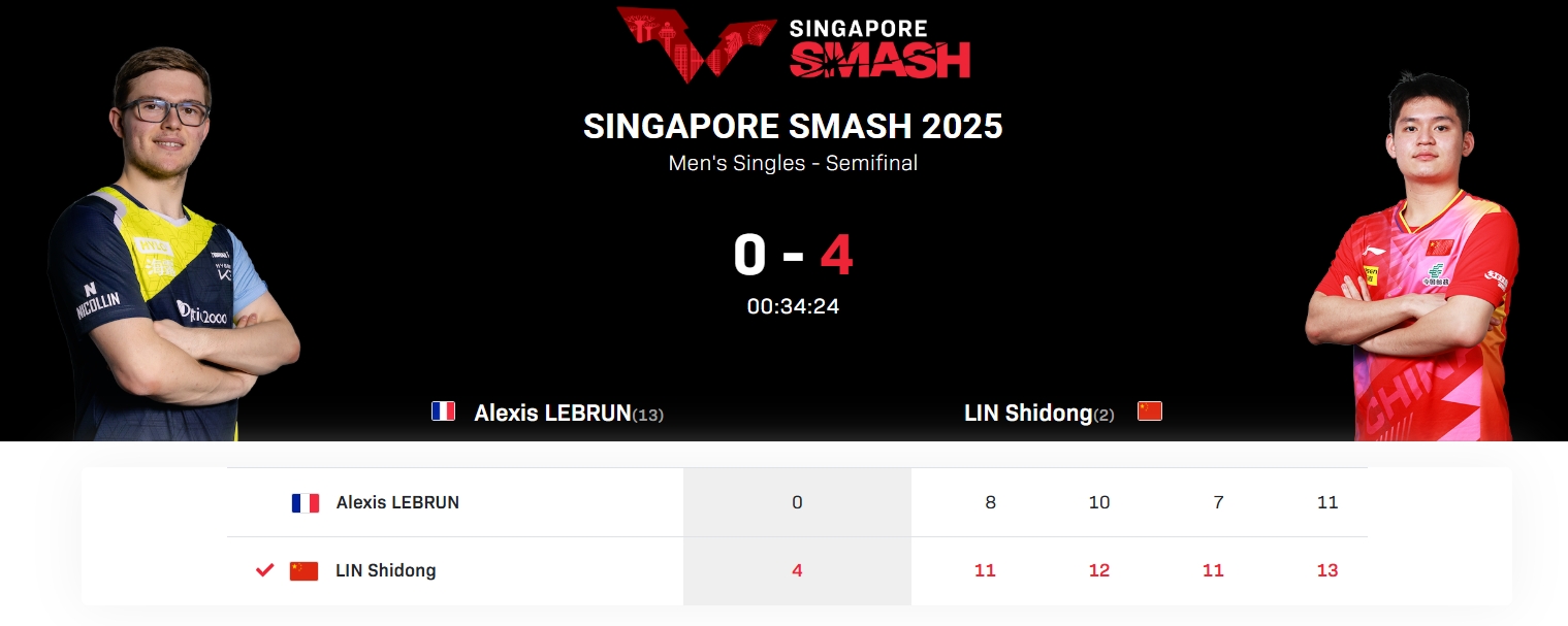 直播吧02月08日讯 WTT新加坡大满贯男单半决赛,林诗栋4比0横扫大勒布伦,与梁靖崑会师男单决赛。