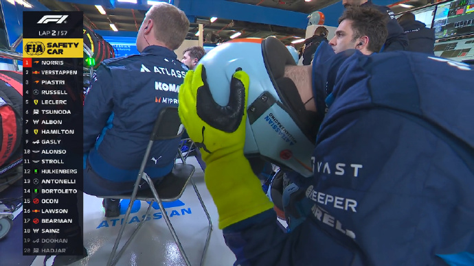 安全车带了几圈后,比赛恢复进行。阿隆索和角田裕毅涉嫌在安全车下违规,被赛会记录。