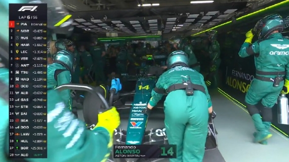 正式发车后,迈凯伦车队皮亚斯特里、诺里斯排在前二。劳森维修区发车升至第18。