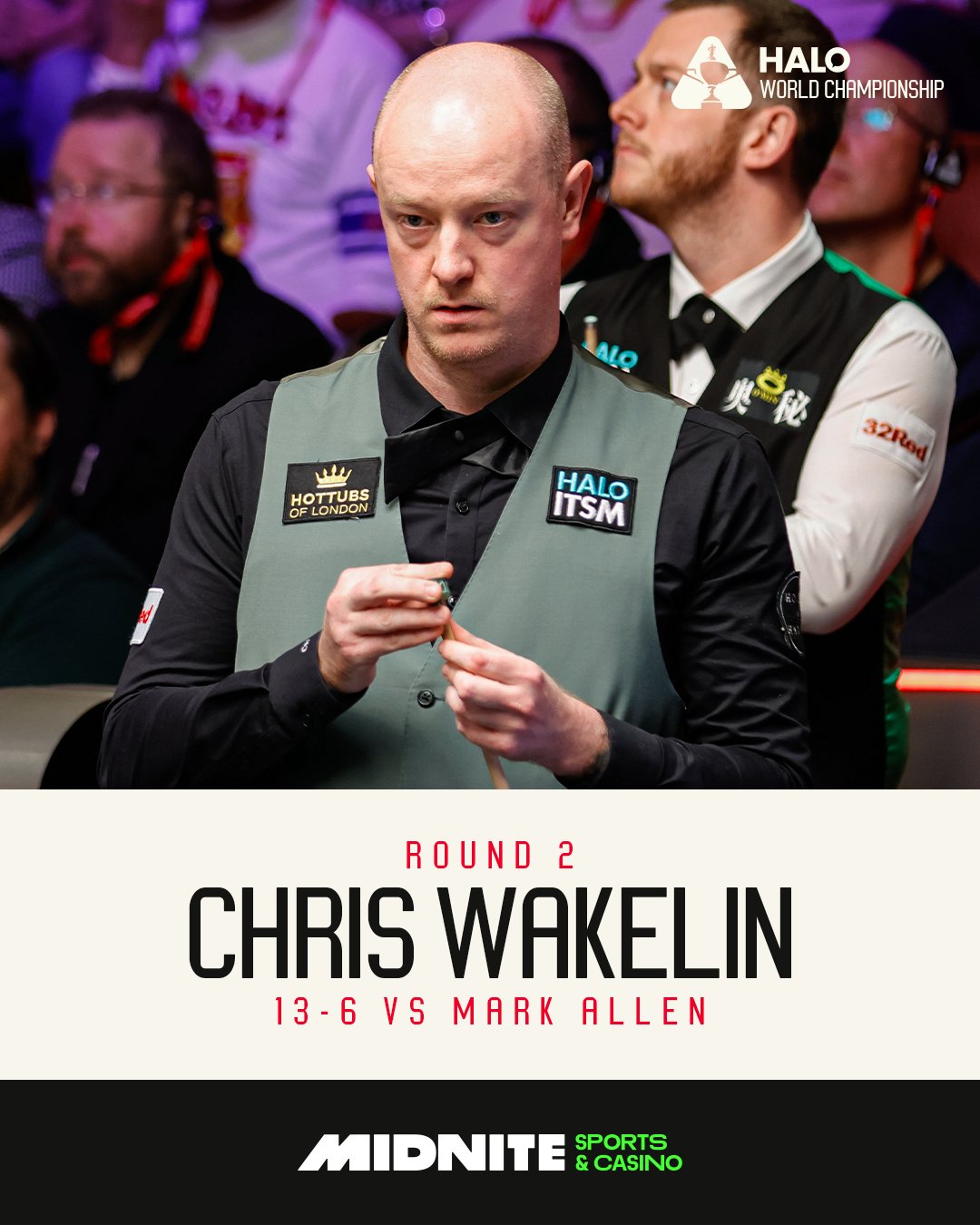 第三阶段开场艾伦连续挽救赛点,第18局艾伦冲击147错失黑球遗憾止步于单杆81分,最终韦克林以13-6的比分战胜艾伦晋级8强