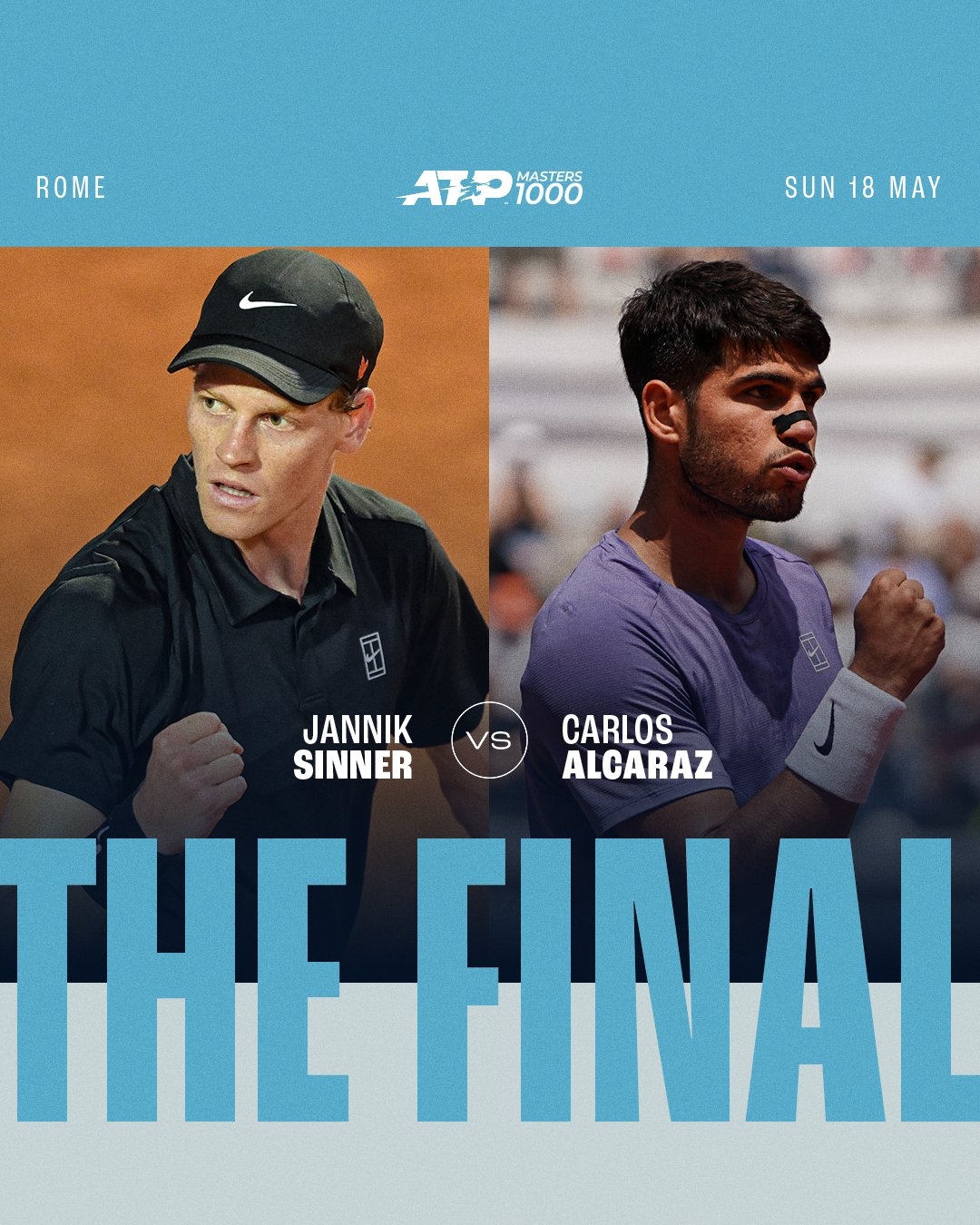 职业生涯首次在罗马大师赛闯进决赛,他将与阿尔卡拉斯争夺男单冠军。
