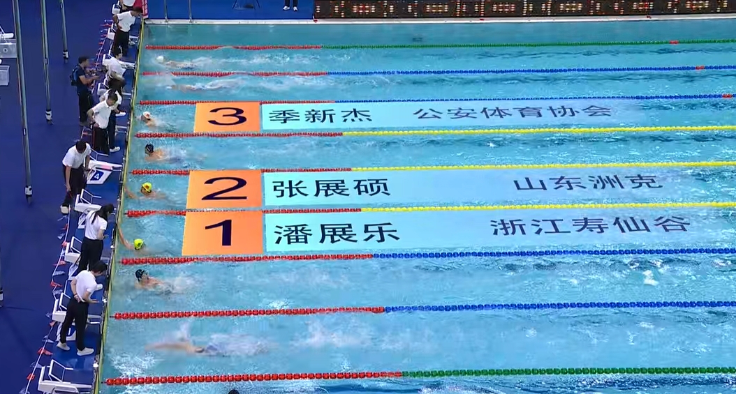 张展硕亚军,季新杰季军。汪顺排名第4,孙杨排名第8。