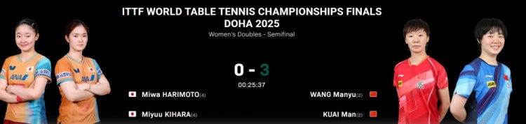 直播吧5月24日讯 在刚刚结束的世乒赛女双半决赛中,中国组合王曼昱/蒯曼3-0击败日本组合木原美悠/张本美和,晋级决赛。