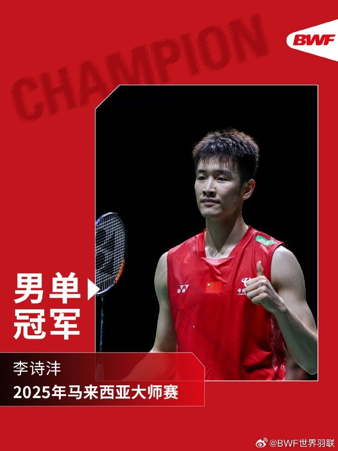 直播吧5月25日讯 在下午结束的马来西亚羽毛球大师赛男单决赛中,中国选手李诗沣直落两局击败印度选手斯里坎特,夺得冠军。