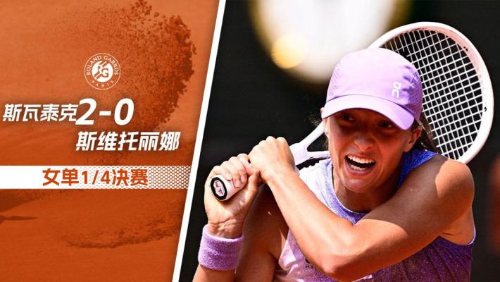 直播吧06月03日讯 女单1/4决赛,四届赛会冠军、5号种子斯瓦泰克以6-1/7-5的比分战胜13号种子斯维托丽娜,成功锁定一个四强名额。接下来,她将战头号种子萨巴伦卡。