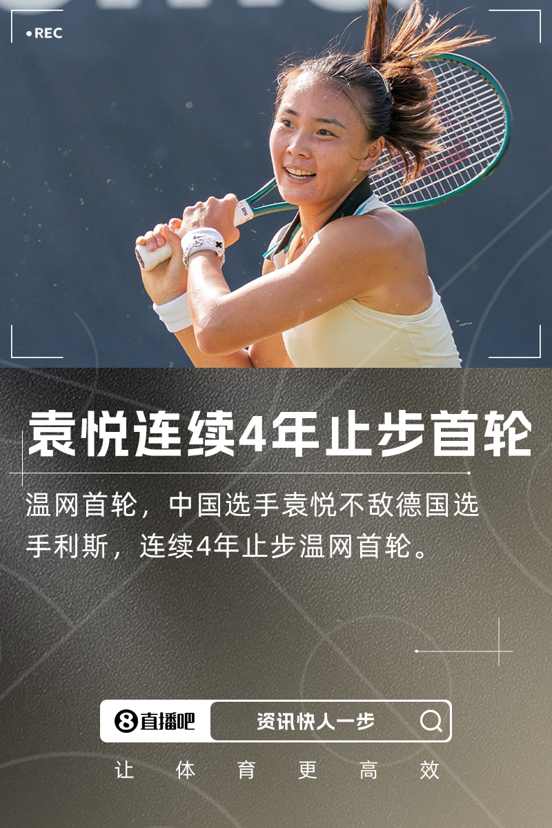 第三盘比赛袁悦2-6输给对手,最终大比分1-2落败,连续4年止步温网首轮。