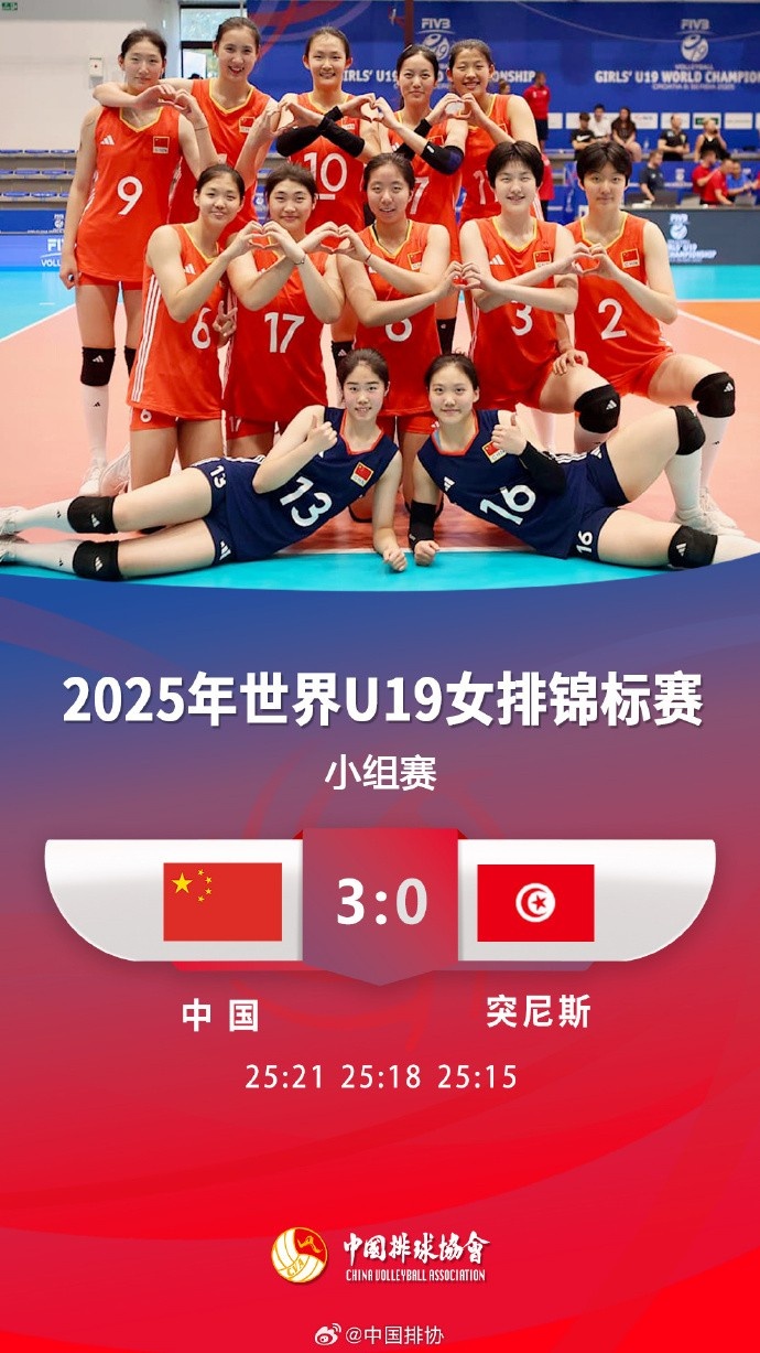 直播吧7月3日讯 在凌晨结束的U19女排世锦赛小组赛首场比赛中,中国U19女排3比0完胜突尼斯U19女排,取得开门红。
