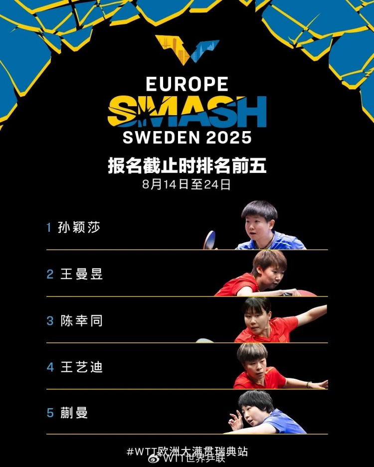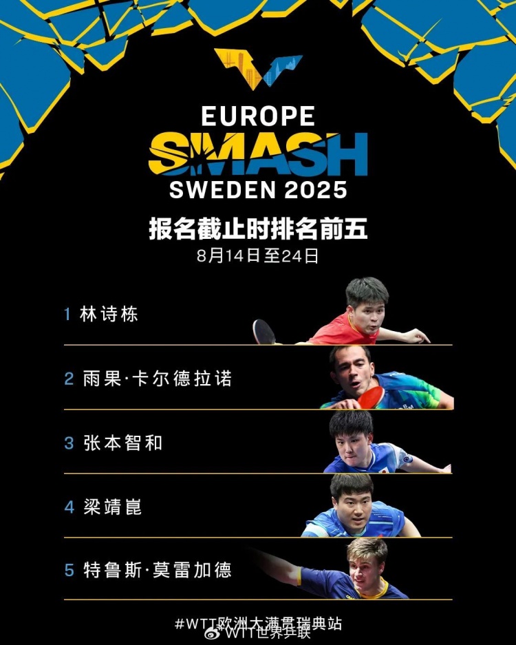 WTT欧洲大满贯瑞典站2025将于8月14日至24日在马尔默体育馆举行。