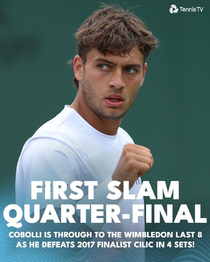 科博利生涯首进大满贯八强。下一轮,他将与德约科维奇和德米纳尔之间的胜者争夺一张半决赛门票。