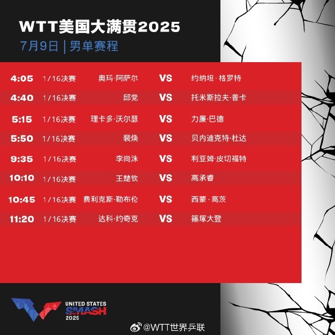 直播吧7月8日讯 WTT美国大满贯明天将进入到第三个比赛日的争夺,王楚钦和孙颖莎将在单打第二轮比赛中登场亮相。