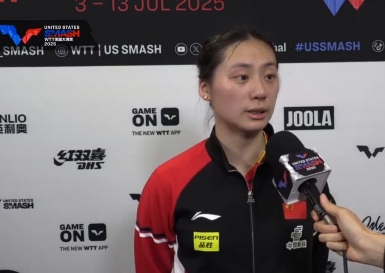 直播吧7月11日讯 在凌晨结束的WTT美国大满贯女单1/8决赛中,国乒小将陈熠3-1击败孙颖莎,晋级女单8强。赛后,她接受了记者采访。