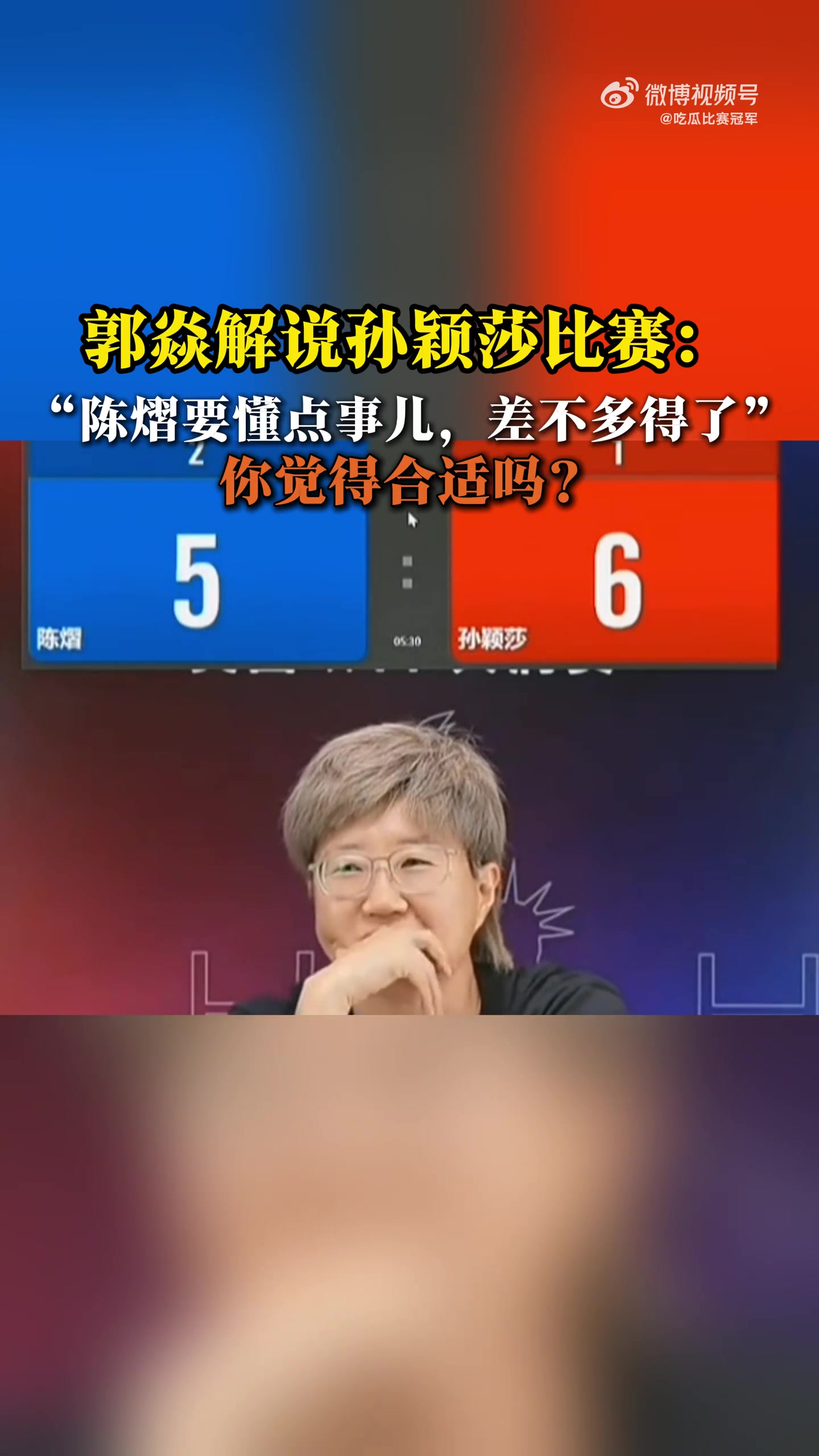 前乒乓球国手郭焱在解说孙颖莎vs陈熠比赛时,说道“陈熠要懂点事儿,差不多得了。”随后郭焱在个人社媒录制视频道歉。