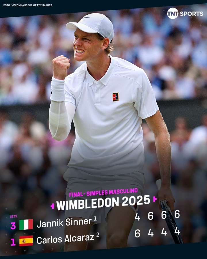 直播吧07月14日讯 温网决赛,辛纳击败阿尔卡拉斯夺冠,辛纳拿到生涯第四座大满贯。