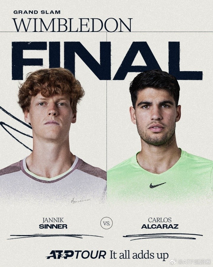 直播吧7月14日讯 在刚刚结束的温网男单决赛中,辛纳击败阿尔卡拉斯,生涯首夺温网男单冠军。