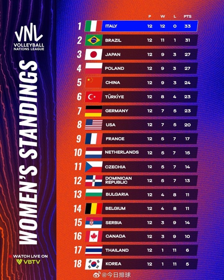 直播吧07月14日讯 2025世界女排联赛美国阿灵顿站,中国女排3-2逆转战胜美国女排,本站比赛四连胜完美收官。