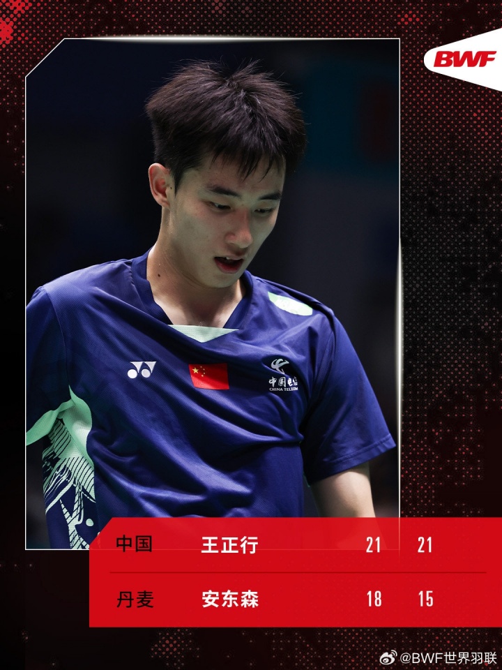 第一局,王正行21-18拿下。第二局,王正行11-8领先3分进入技术间歇,最终王正行21-15取得第二局胜利,成功晋级决赛。