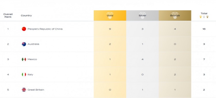 在13个项目的争夺中,中国队夺得9个项目的冠军,其中有6个项目为奥运项目。在混双三米板、女子跳水1米板、男子3米板和男子10米台项目上,没有夺得冠军。