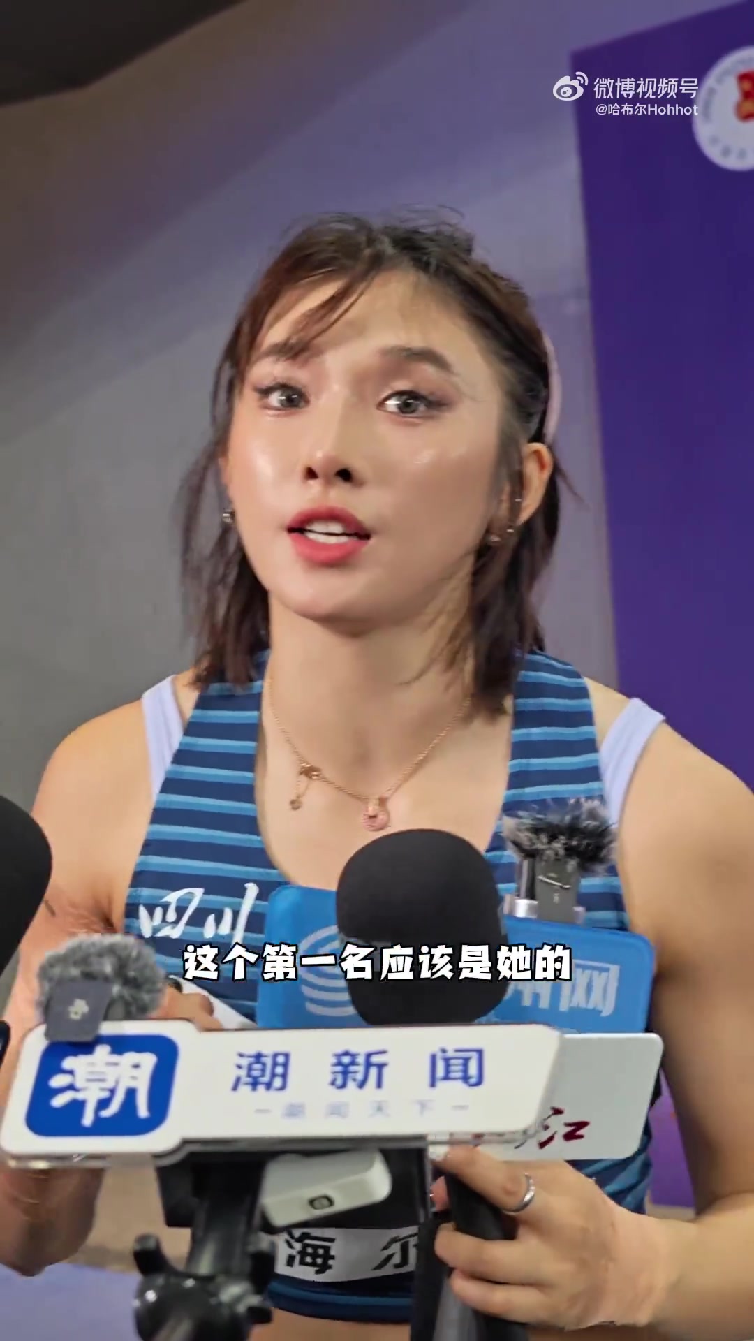 我觉得今天刘景扬选手她跑得很好,她要是不打栏的话,这个第一名应该是她的。所以说我还是觉得我拿这个第一名,我觉得也不值得庆贺。我希望就是后面的比赛我还得要继续加油。”