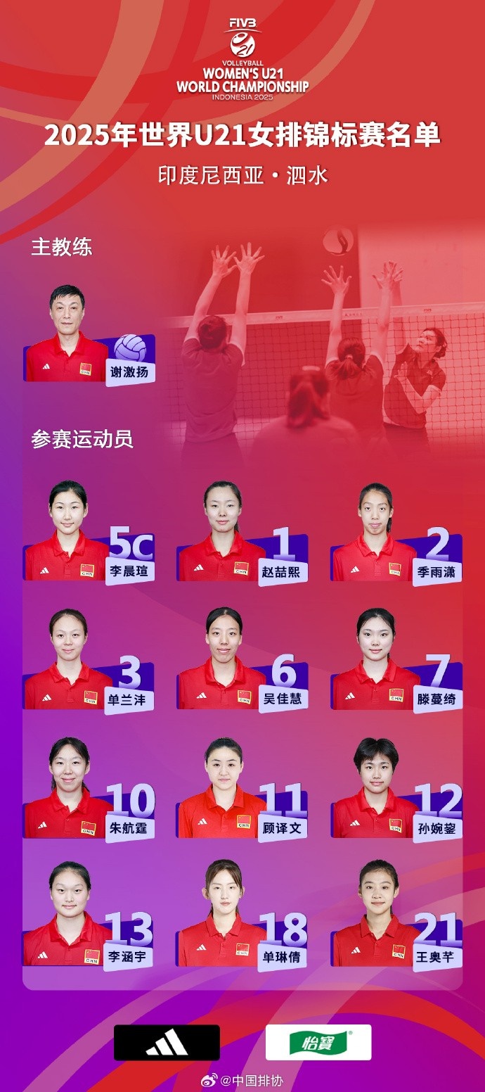 直播吧8月5日讯 中国女排公布了U21世锦赛的大名单,李晨瑄领衔,单琳倩、王奥芊也将出战本次U21女排世锦赛。