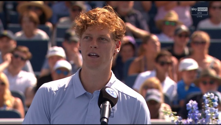 直播吧8月19日讯 ATP1000辛辛那提决赛,辛纳在首盘0-5落后的情况下因身体不适退赛,他在颁奖仪式上发表了讲话。
