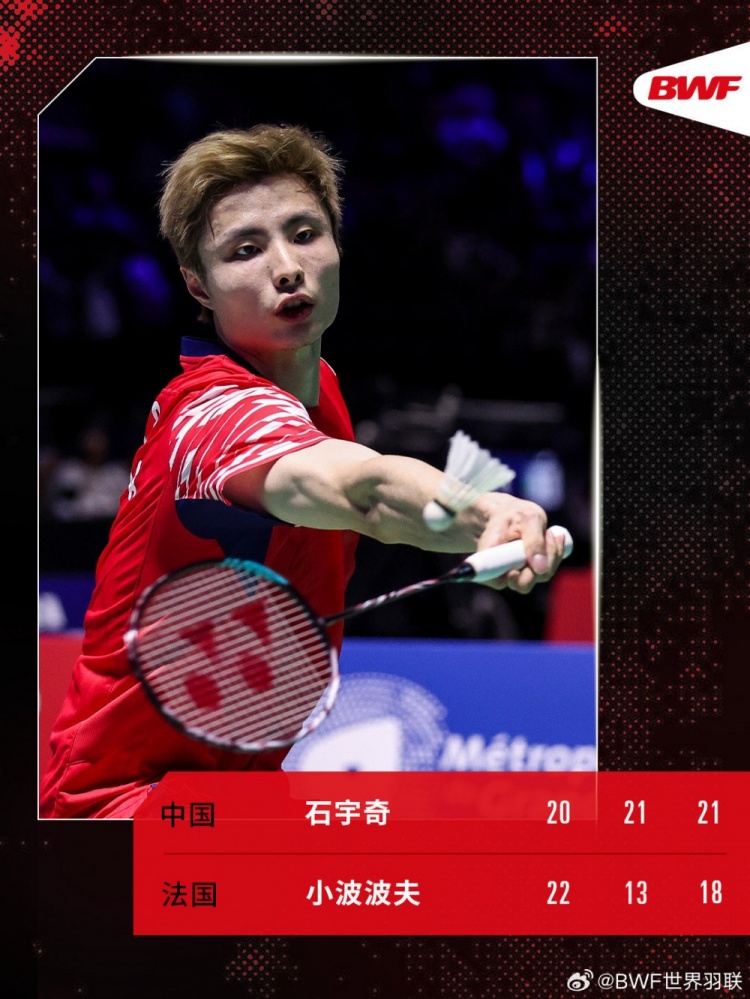 羽毛球世锦赛男单1/8决赛:石宇奇2-1逆转小波波夫,成功晋级8强