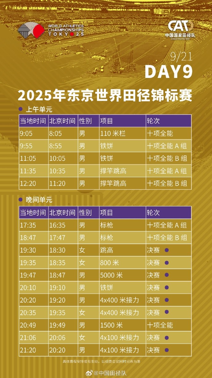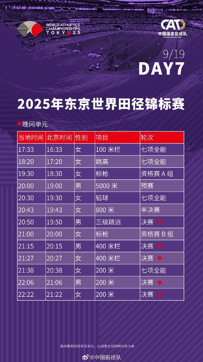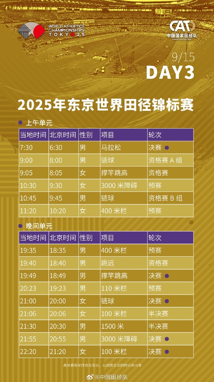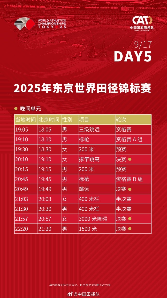 直播吧9月12日讯 2025东京田径世锦赛赛程出炉,男子100米决赛将于北京时间9月14日晚上21:20进行。