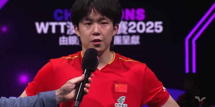 直播吧09月14日讯 WTT冠军赛中国澳门站男单半决赛,王楚钦4-0战胜韩国选手张禹珍,顺利晋级决赛。赛后王楚钦接受了采访。