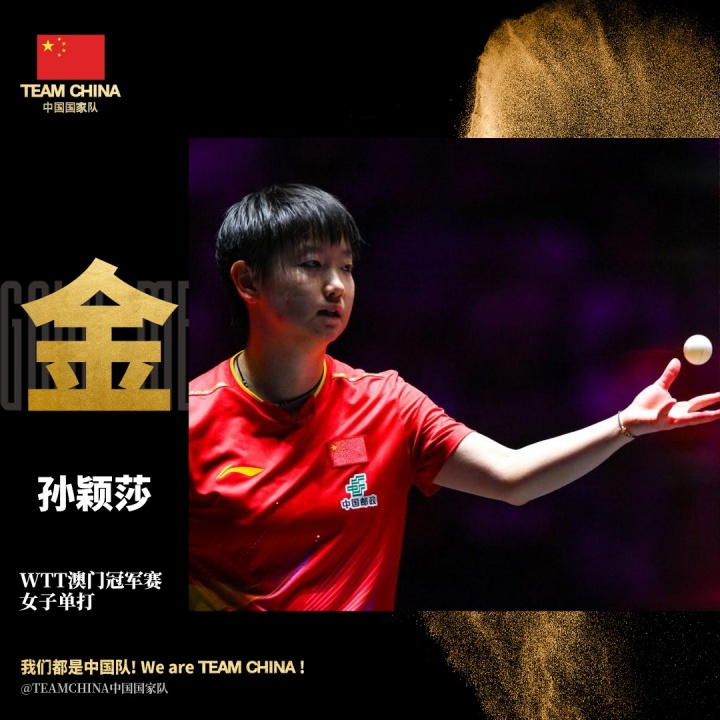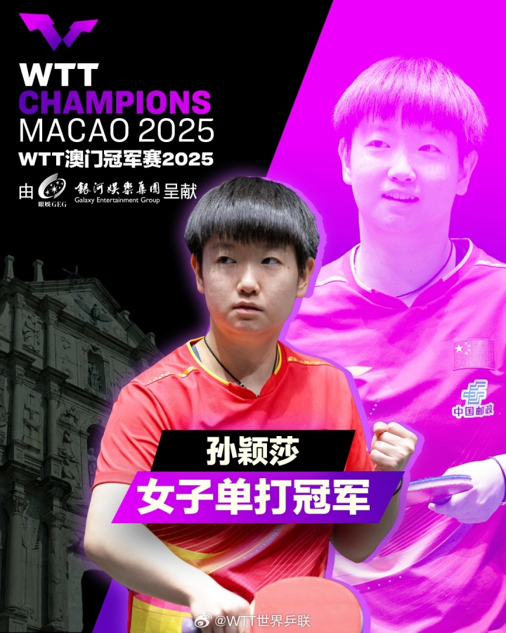 直播吧09月14日讯 WTT冠军赛中国澳门站女单决赛,孙颖莎对阵另一位中国选手王曼昱,经过7局较量,孙颖莎最终4-3战胜王曼昱,夺得女单冠军。