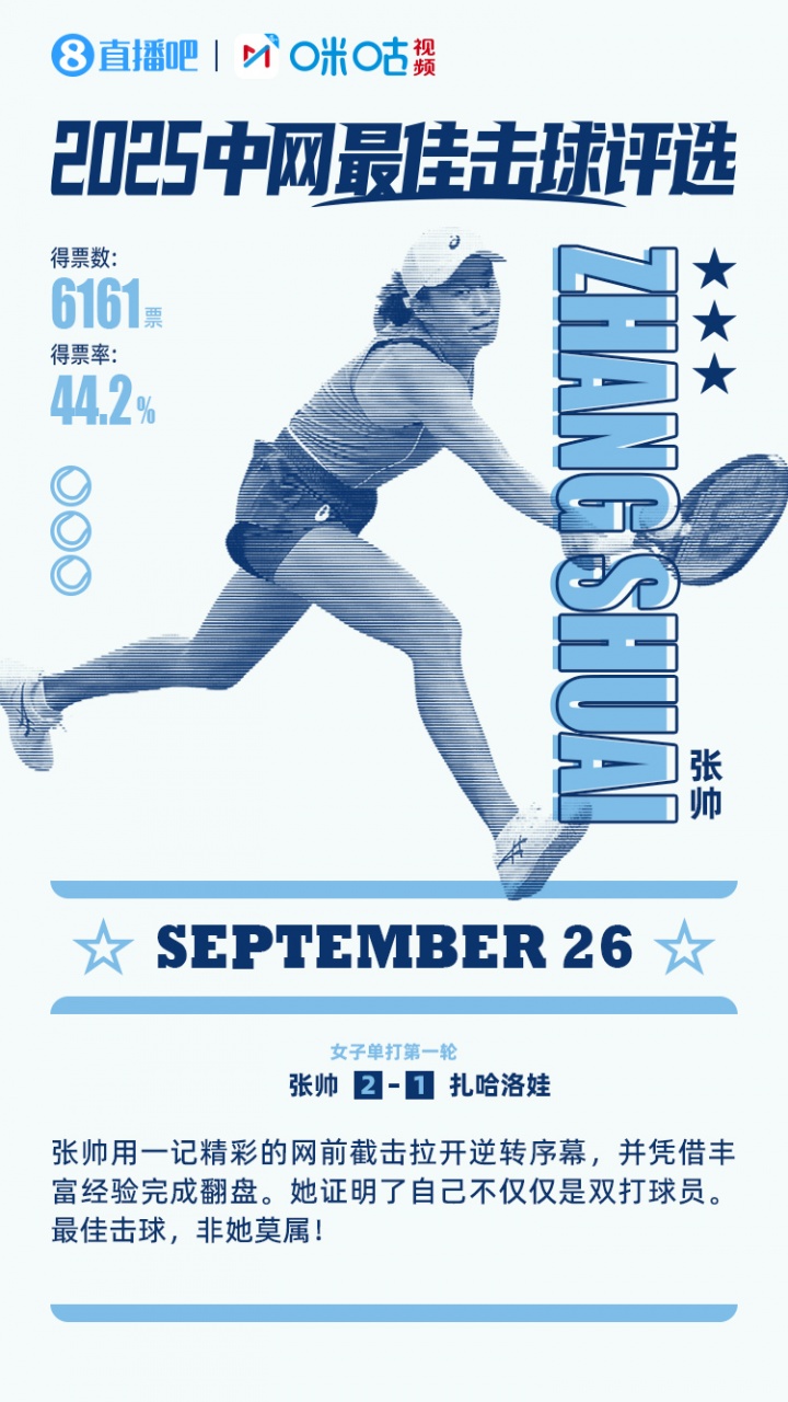 直播吧X咪咕体育每轮#中网最佳击球#评选活动