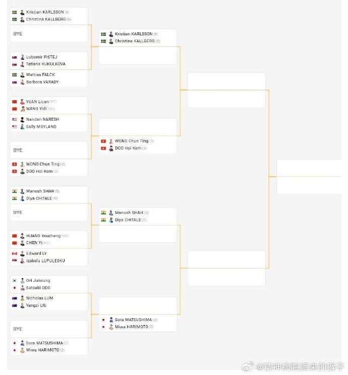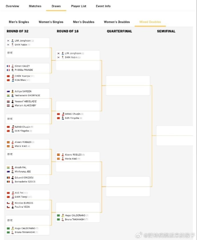 混双正赛签表详情如下: