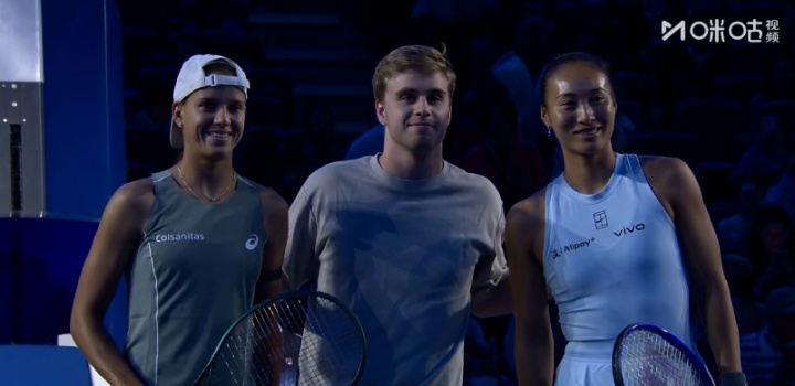>跨界联动!瑞典乒乓球球员莫雷加德为郑钦文比赛挑边,三人合影