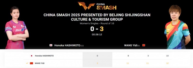 本场比赛,王艺迪以3-0的大比分击败桥本帆乃香,局分为【11-8,11-3,12-10】