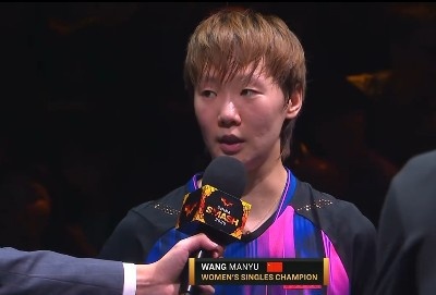 直播吧10月5日讯 WTT中国大满贯女单决赛,经过6局鏖战,王曼昱4-2战胜孙颖莎夺冠。赛后,王曼昱接受采访谈到本场比赛以及本次大满贯的感受,王曼昱表示每次跟孙颖莎比赛都能够学习到很多东西,这次大满贯收获价值非常大。