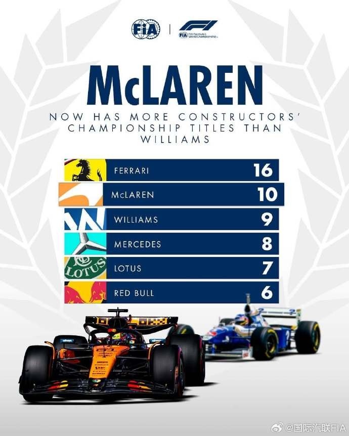 直播吧10月6日讯 10月5日晚,拉塞尔生涯首次问鼎新加坡大奖赛冠军,迈凯伦车队则在本站比赛中顺利卫冕,提前六站锁定队史第10座车队总冠军,跻身车队总冠军榜第二。