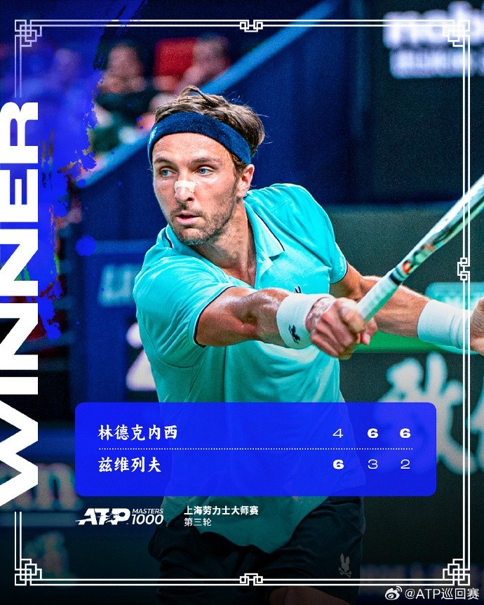 法国选手林德克内西以4-6 6-3 6-2逆转3号种子兹维列夫,继温网首轮后再胜对手,首次跻身赛会16强,接下来他将对阵15号种子莱赫卡。