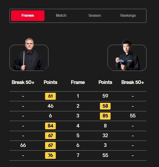 开场后米尔金斯先下一城,紧接着赵心童连胜两局并在第三局中打出单杆55分,随后米尔金斯连胜四局获得比赛胜利。